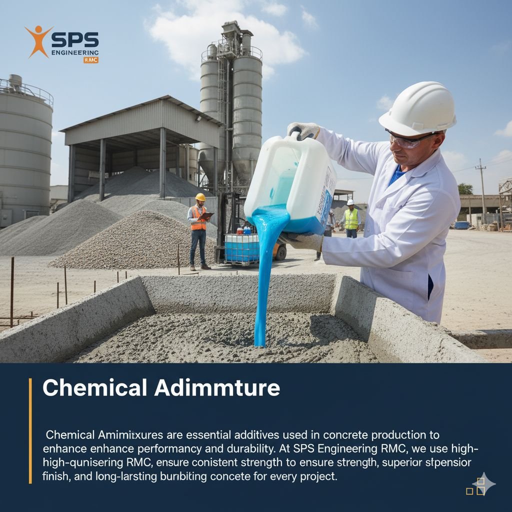 Chemical Admixtures are essential additives used in concrete production to enhance performance, workability, and durability. At SPS Engineering RMC, we use high-quality admixtures to ensure consistent strength, superior finish, and long-lasting concrete for every project.