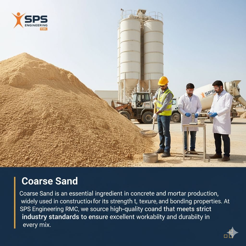 Coarse Sand is an essential ingredient in concrete and mortar production, widely used in construction for its strength, texture, and bonding properties. At SPS Engineering RMC, we source high-quality coarse sand that meets strict industry standards to ensure excellent workability and durability in every mix.