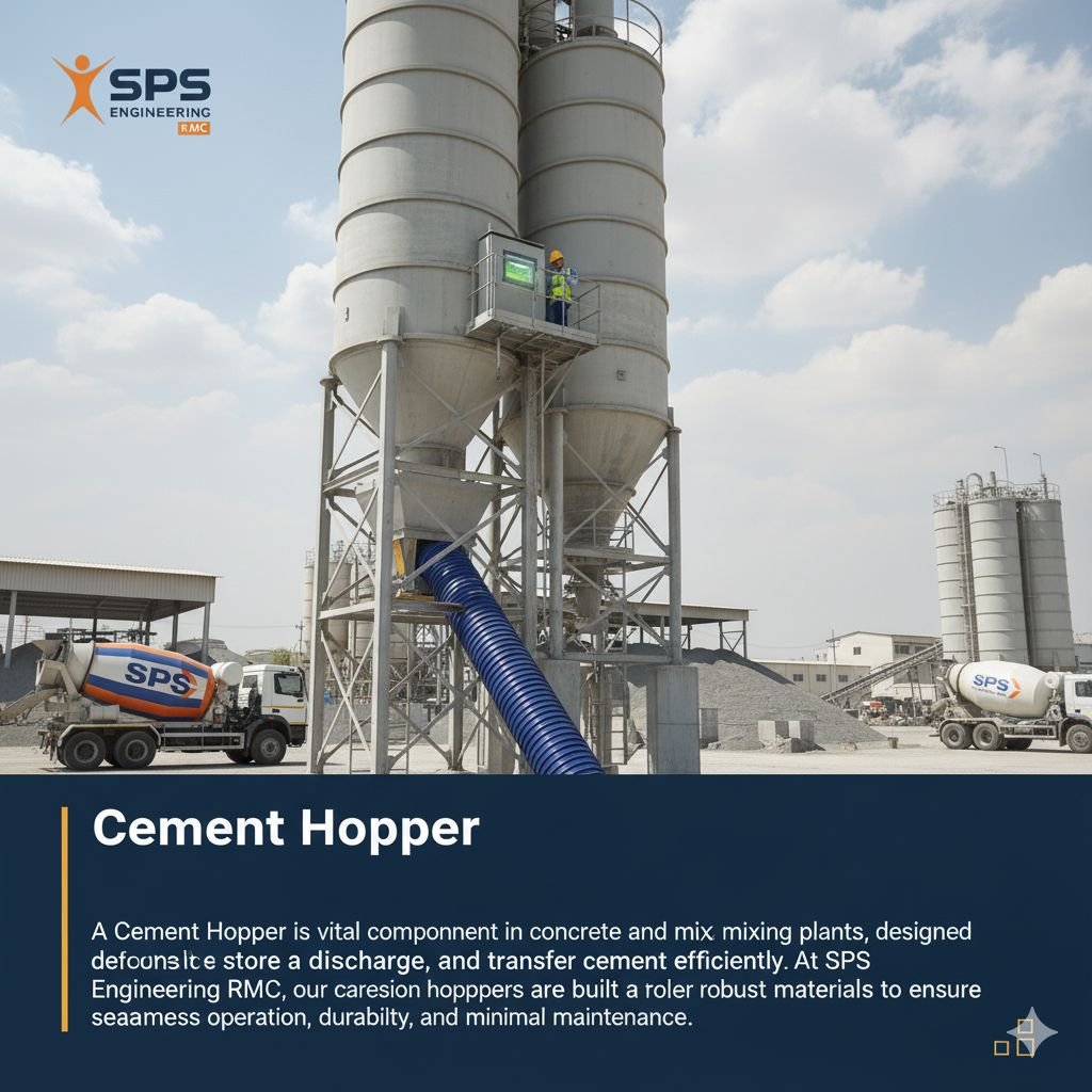 A Cement Hopper is a vital component in concrete batching and mixing plants, designed to store, discharge, and transfer cement efficiently. At SPS Engineering RMC, our cement hoppers are built with precision engineering and robust materials to ensure seamless operation, durability, and minimal maintenance.